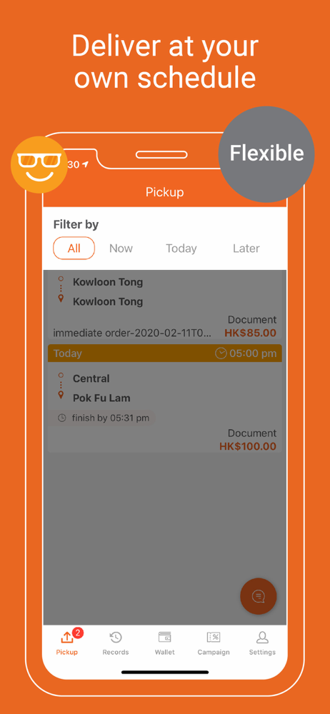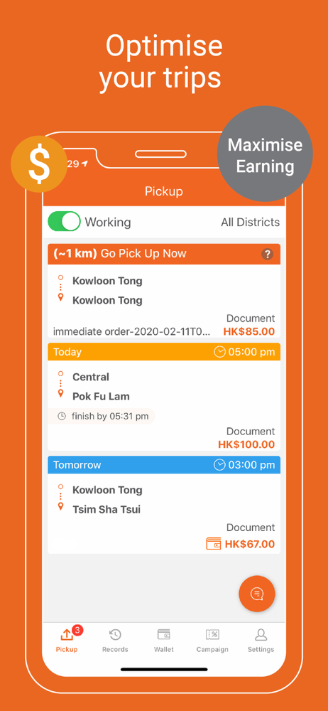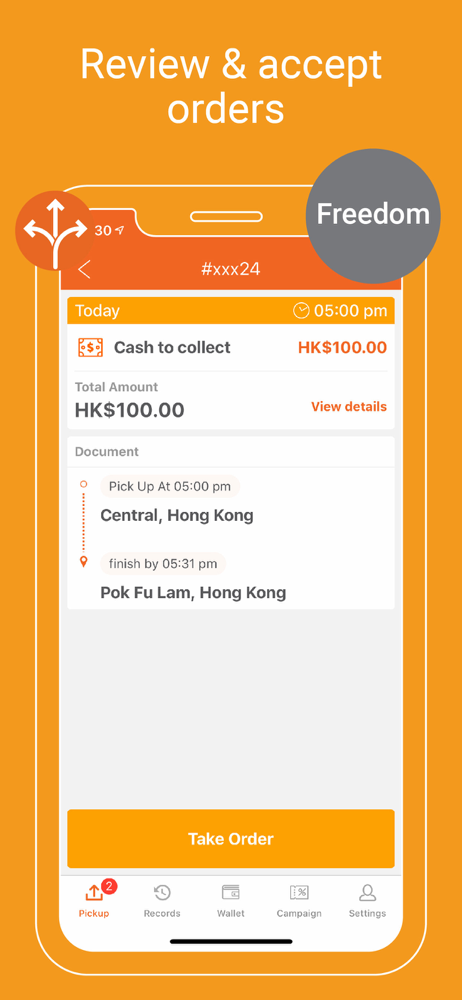 Accept orders and deliver goods. Sign up with your bike, van, car or lorry to start earning money for every delivery you make. Work around your own schedule and pick orders which suit you best. Be your own boss and track your earnings with every order.