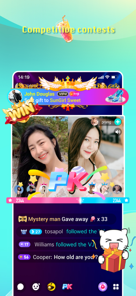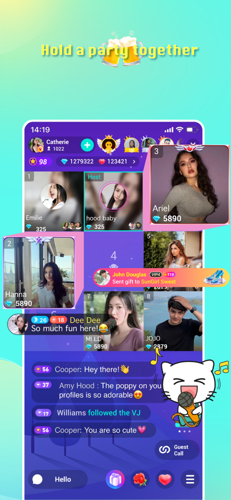 There are different kinds of virtual gifts including roses, rings, angels, supercars, luxury cruises, dream castles, and lots more will be released soon. You can level up quickly by sending virtual gifts to your favorite VJs.