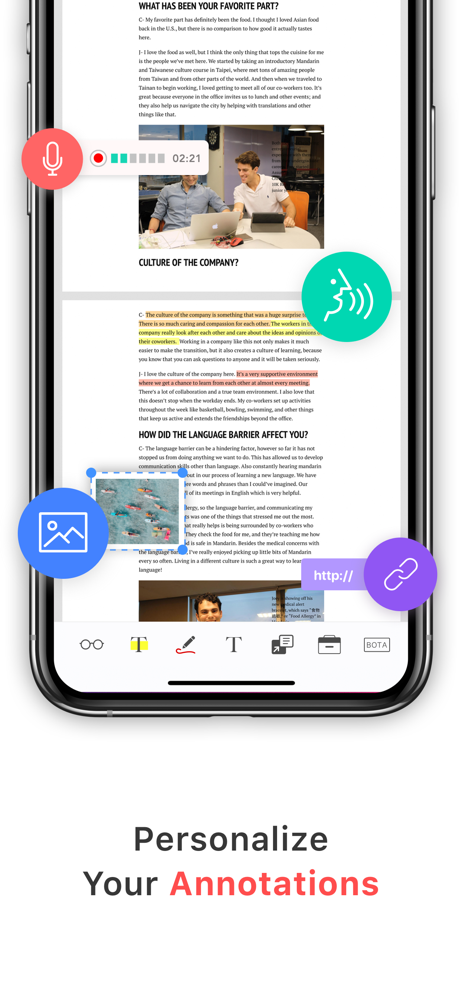 • Highlight text and excerpts on web pages through built-in or Safari browser.