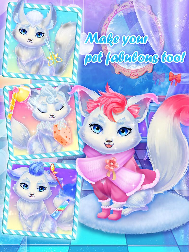 -Play with a cute fox: shower it, trim, curl and dye its fur, dress it up and knit sweaters for it.
