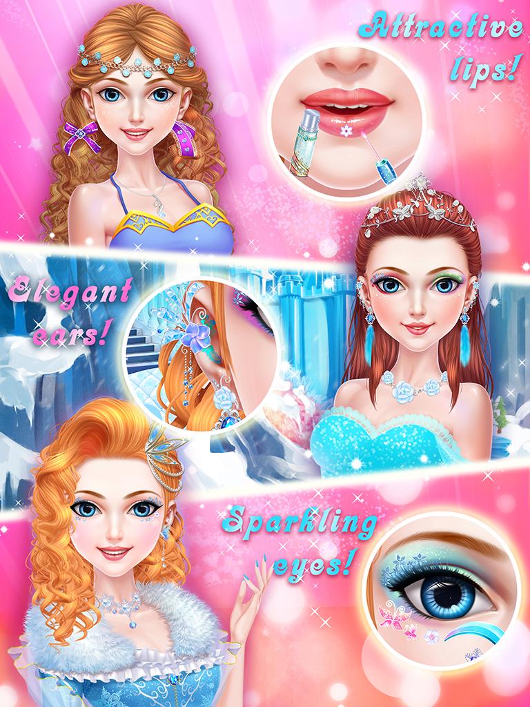 Why is the palace of Frozen Ice Kingdom so lively today? Oh, the annual winter banquet is going to begin. Everyone is enthusiasm and excited, but the most beautiful Frozen Ice Princess is still absent. Where is she? Ah, the Princess is making herself up in front of the dressing table in royal salon. This time, it can't be settled with normal cosmetics in normal salon. Face, eyes, lips, ears; every part should be decorated separately with specialized cosmetics and accessories. Only in this way can the make-up draw worldwide attention.