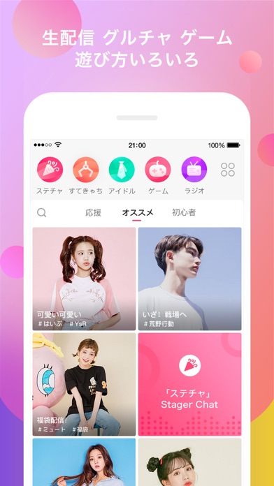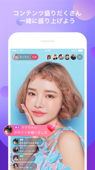 - アイドル、音楽、ゲームなど、豊富なコンテンツで自分のお気に入りの配信が見つかる!初心者の方でも大歓迎!配信者にかわいいギフトやスタンプを贈って、気軽にコミュニケーションできる!