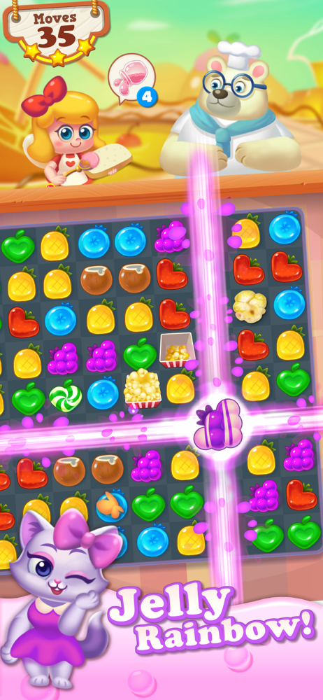 Over 500 levels packed with fruits, candy, gummies, jam and more treats for you and your furry friends! Start your delicious adventure now!