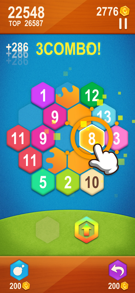 It sounds easy, but when the hexagon numbers are full of the board, and with the pressure of high scores, you'll find it is not as easy as you thought. You've got to think carefully and make a good plan! Luckily, you are able to use special items to help you overcome some obstacles.