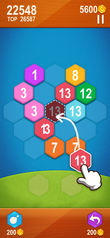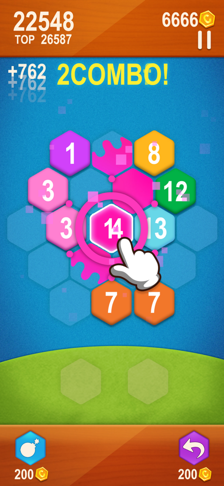 In the game, you make three or more same numbers merged to a higher number. The goal is to make the number 14 with Hexa blocks! Combo merges could give you extra points.
