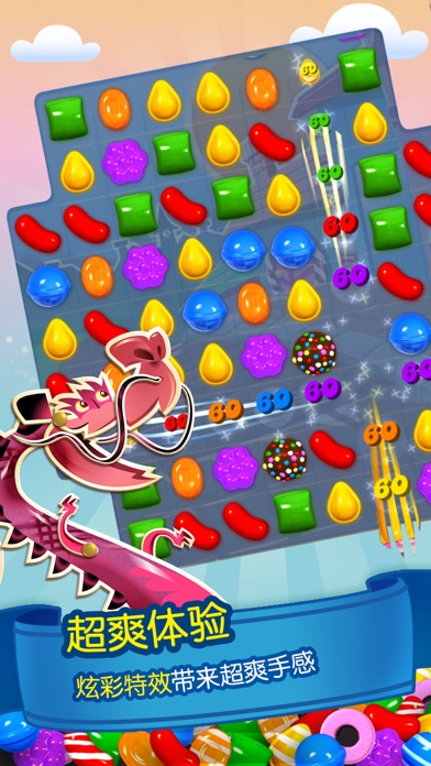 《糖果传奇》(Candy Crush Saga)是全球最受欢迎的微策略消除手游大作。以它梦富有挑战性的闯关地图、梦幻甜美的糖果风格、丰富趣味的音效、爽快流畅的手感,以及独创的微策略消除玩法,带给玩家最高品质的休闲互动体验。