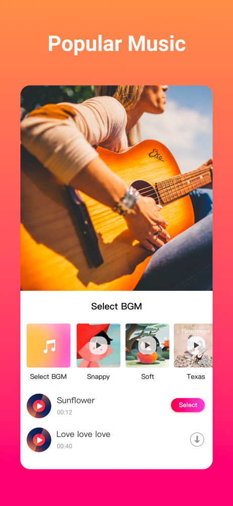 SlidePlus slide show video maker is packed with varieties of background music, so you can always find the one that fits your need while making slideshow videos. You can also add your favorite music from your phone.