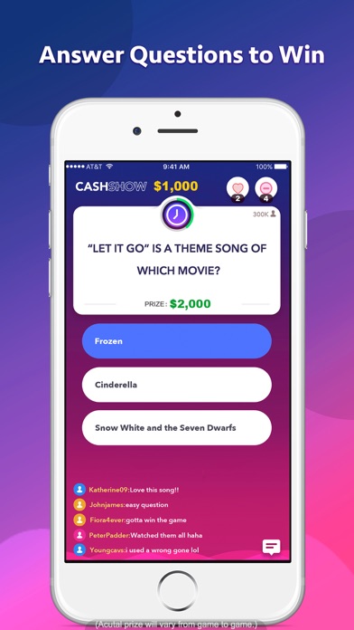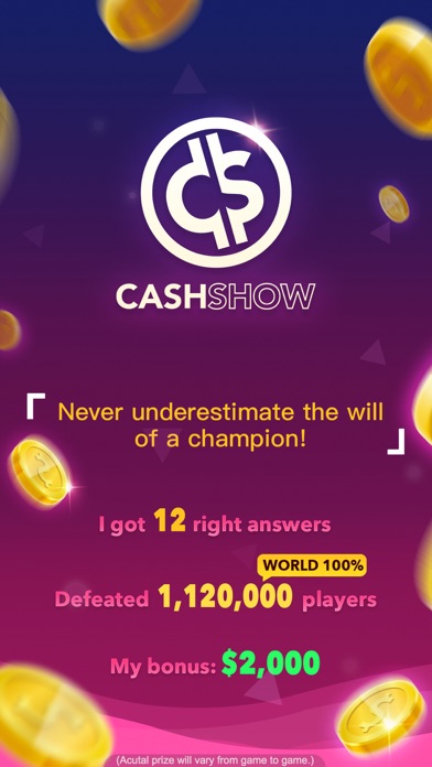 Cash Show is a live trivia show game with real money prizes! You just need to answer questions and you can win BIG MONEY! Enrich your mind and win big prizes with your knowledge! Daily Cash Shows!