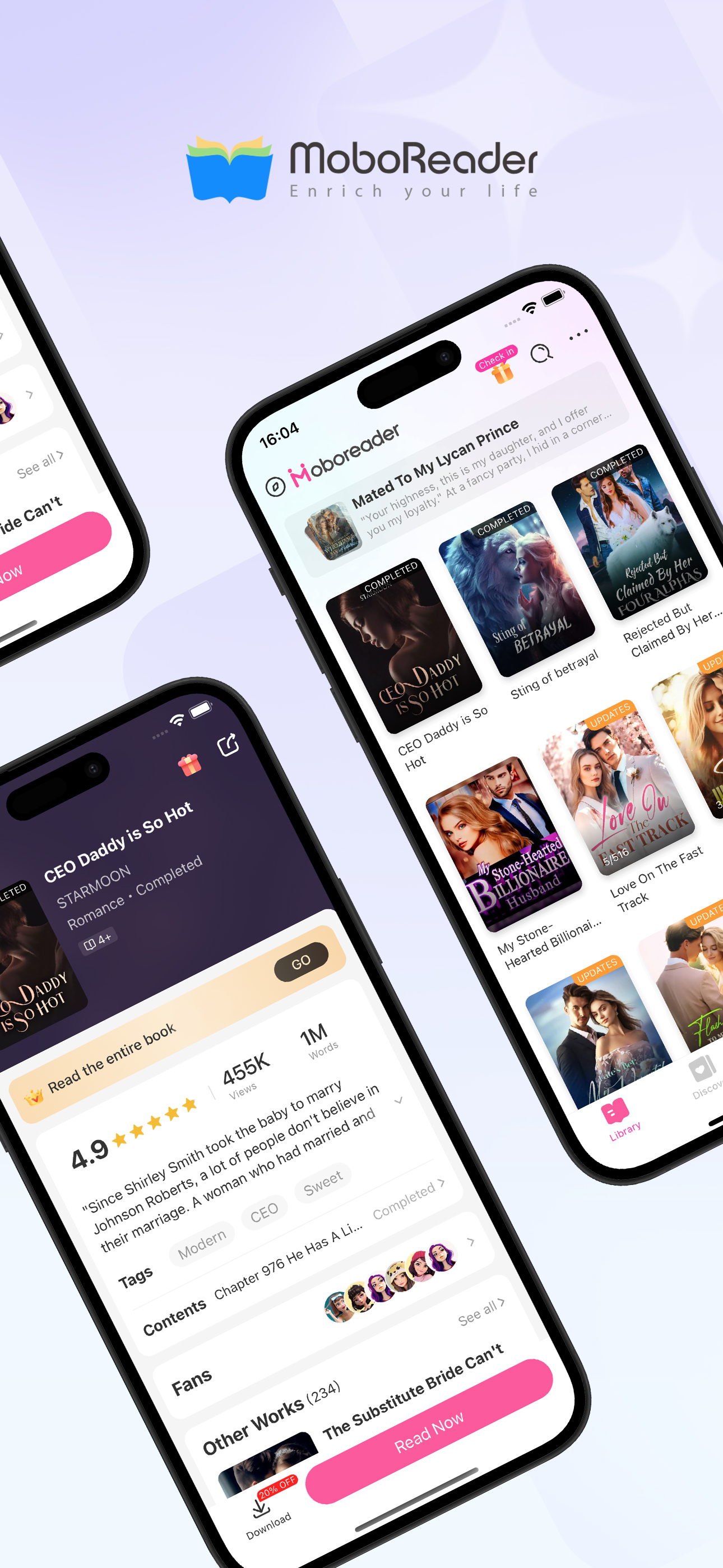 MoboReader offers a wide range of extraordinary stories for over a million readers all around the world. Are you looking to read romance stories—ranging from campus romance, erotica, billionaires, werewolves, modern life, paranormal, ancient society, monarchy, and lots more?