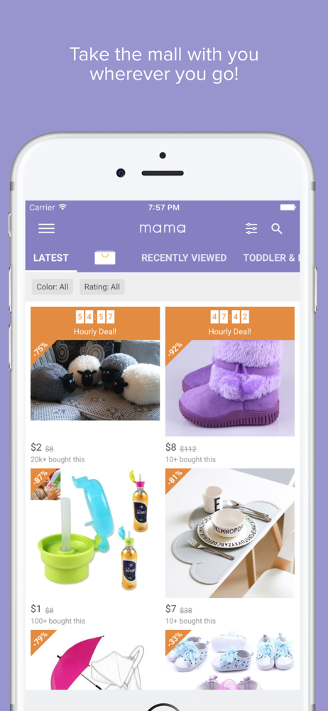 Get trending maternity, newborn, infant, toddler, and kids products at 50-90% OFF retail. Mama is the number one app in Europe and North America to get the best deals on thoughtful items for your loved ones. We go directly to the manufacturers to get you the best deals on the most popular products.