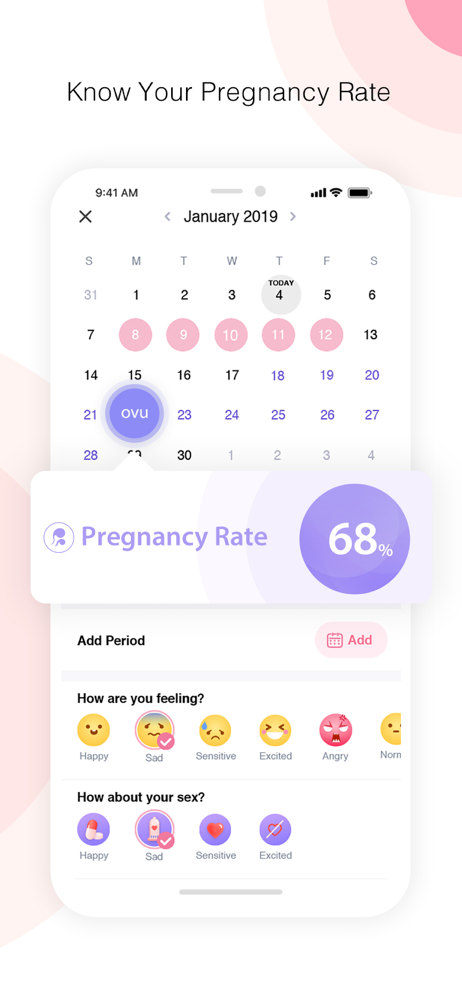 • Helps you to predict menstruation, cycles