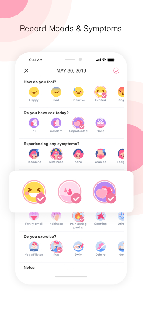 ② Check your calendar to note down your mood and sex;
