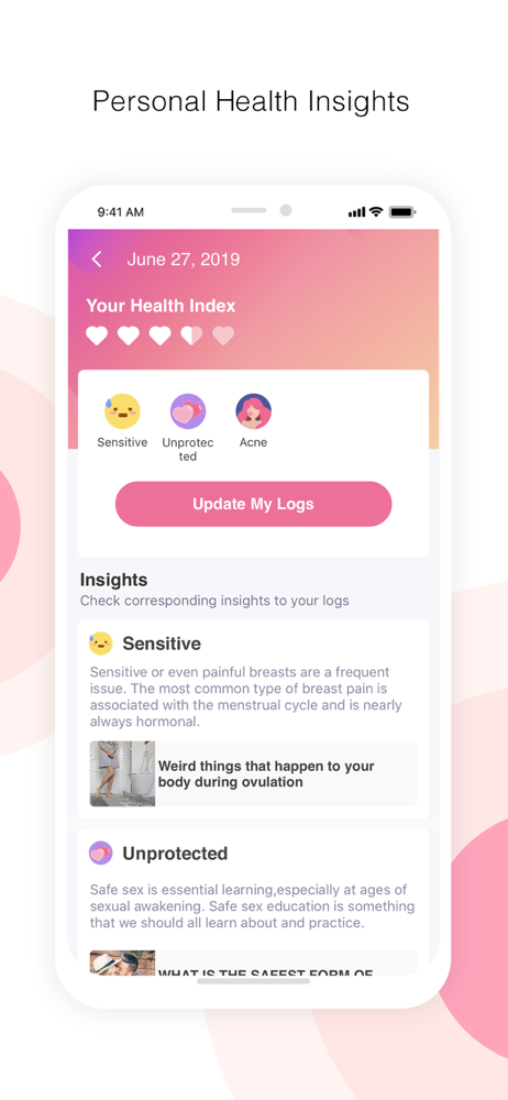 • Analyze your current and past cycles with the menstrual tracker
