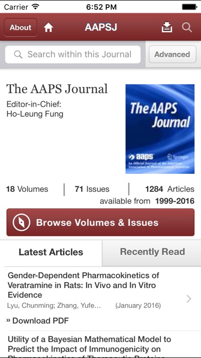 Tap into the most recent developments in all aspects of the pharmaceutical sciences with the AAPS Journals app. The AAPS Journals app includes three journals: Pharmaceutical Research, The AAPS Journal, and AAPS PharmSciTech published by Springer Science+Business Media.
