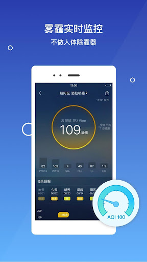 【实时空气质量】实时告诉你当前的空气质量情况,预测污染物浓度趋势,预知未来空气质量变化。时刻监测雾霾情况,绝不吸雾霾,不做人体除霾器。