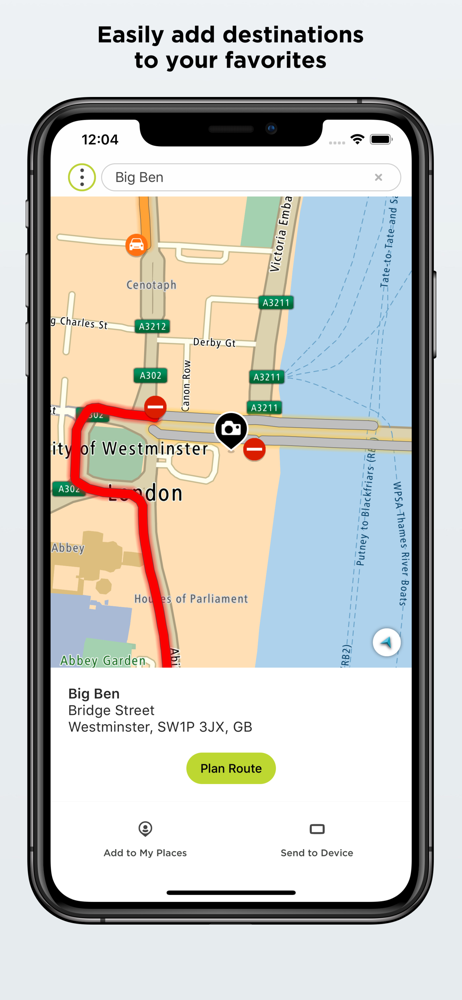 >> Set where you're going using phone contacts, saved favourites, a tap on the map, or just type it in. Then send it to your TomTom GPS navigation and it will guide you through traffic.