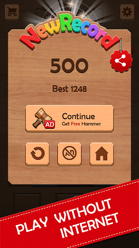 In Block Puzzle, a special item called Clover can be collected. It is an item used to buy new skins of the blocks in Store. Another useful tool is called Hammer, it will be used when you can't put in any more blocks. It is like a life saver and can be collected free before or during the game play!