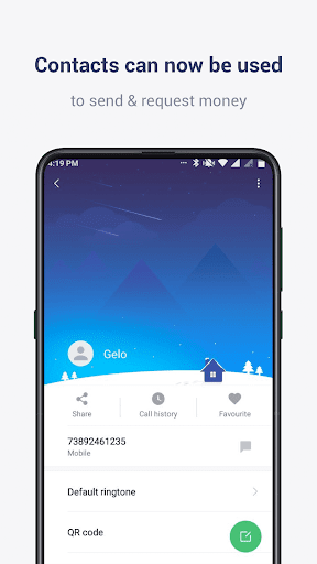 →Contacts >> Send & Request money by selecting any Mi Pay Enabled Contact