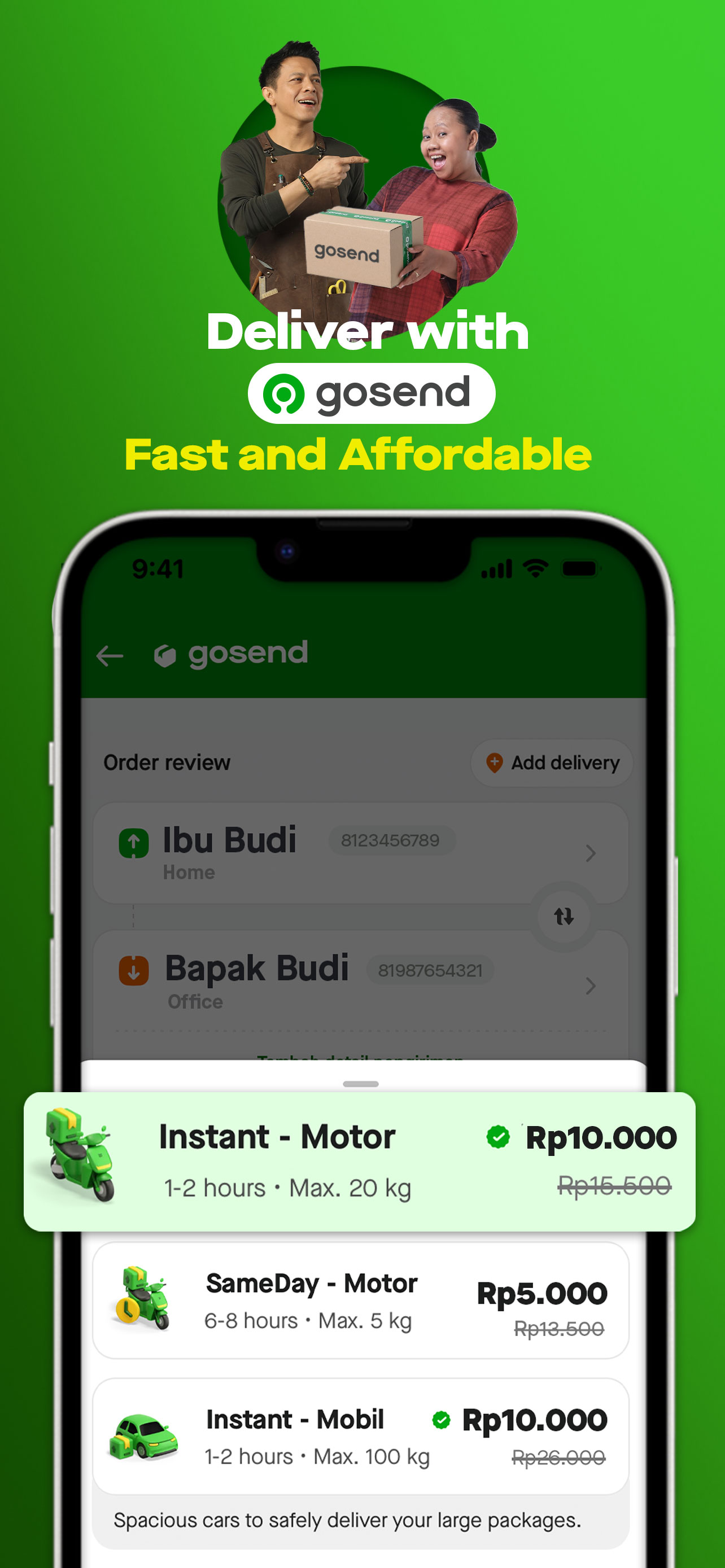 Trust GoSend for all your deliveries, and have your items delivered ASAP with on-time guarantee plus insurance for your peace of mind.