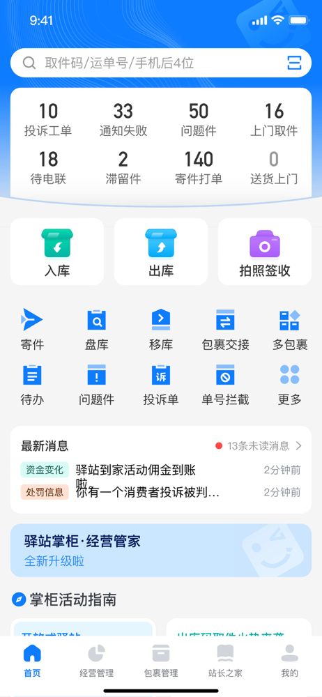 菜鸟网络官方出品,一款专为菜鸟末端站点提供的集基础业务操作和业务管理的移动版系统,其可使用该工具为消费者提供代收、代寄等基础物流服务操作,也可进行相关包裹管理、用户管理。提升站点的工作效能、消费者体验;