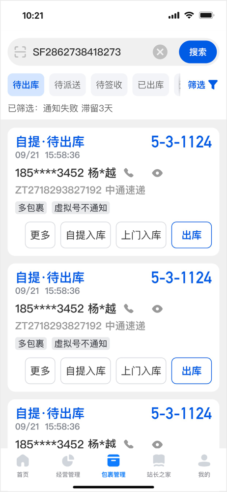 --查件服务:可按照手机号、运单号、提货码进行查件,支持扫码和手动输入方式,精准查询且配合相关后续操作动作;操作节点系统展示、全程跟踪、安全无忧;