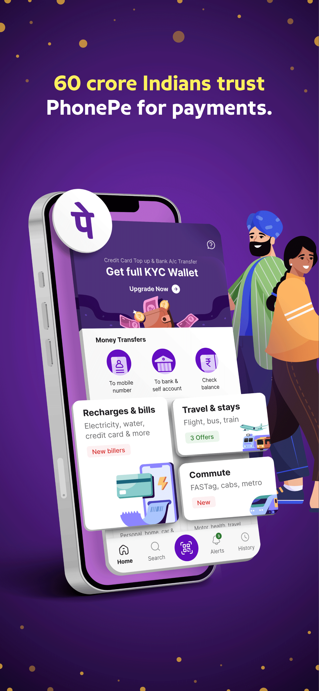 PhonePe is a payments app that allows you to use BHIM UPI, your credit card & debit card or wallet to recharge your mobile phone, pay all your utility bills and to make instant payments at your favourite offline & online stores. You can also invest in mutual funds & buy insurance plans on PhonePe. Get Car & Bike Insurance on our app.