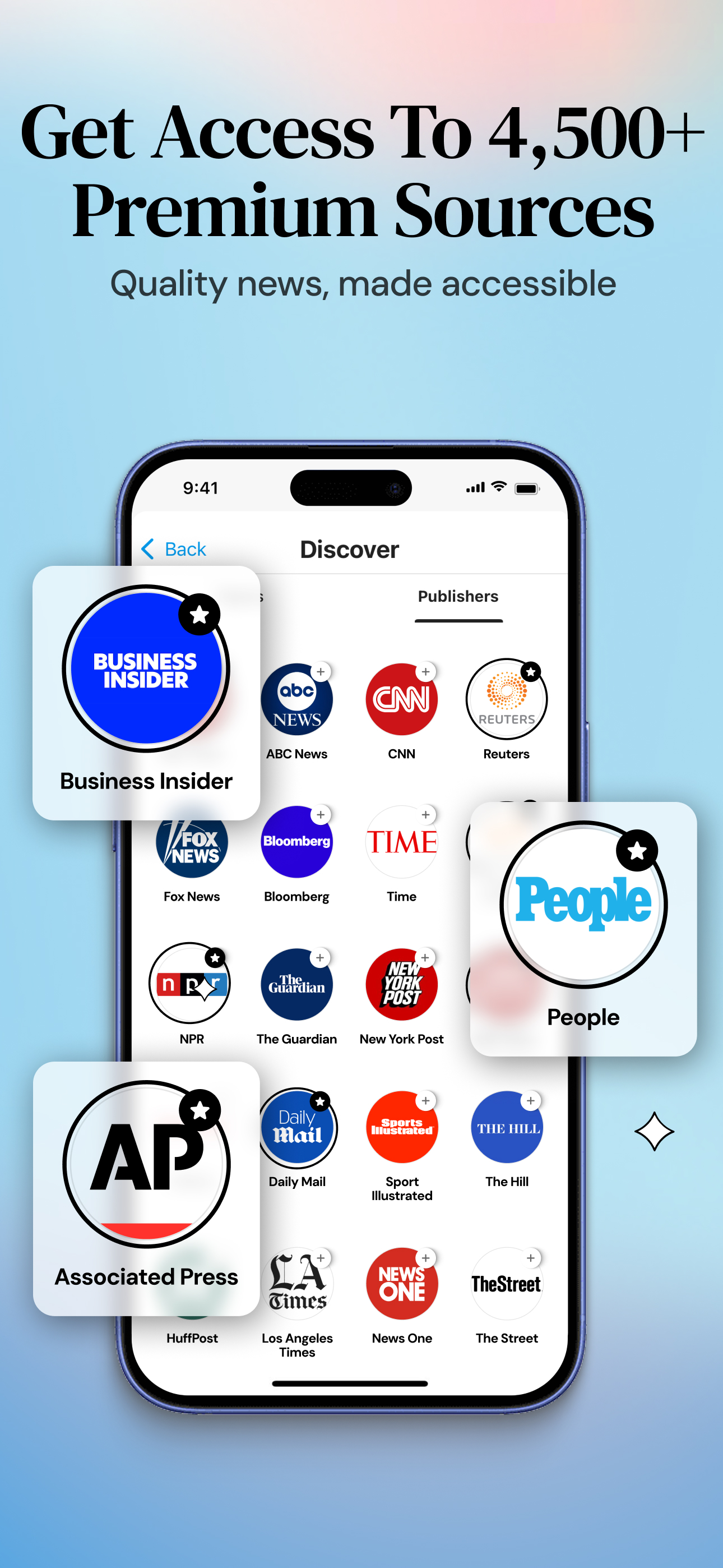 Discover top news from premium publishers in one app: Bloomberg, The Atlantic, USA Today, TIME, The Huffington Post, Bleacher Report, Quartz, The Verge, LAT, VOX, AP, Reuters, Buzzfeed, Fast Company.
