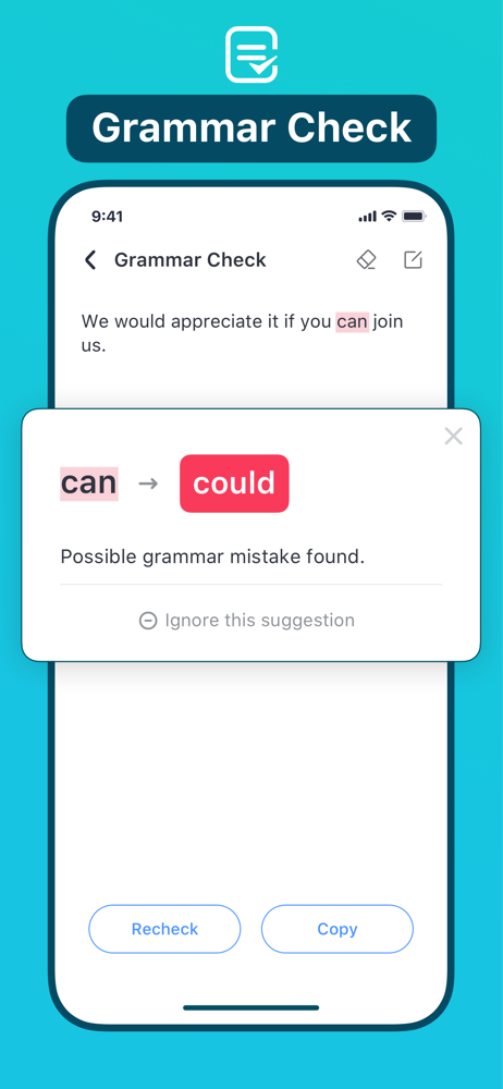 • Grammar Check: Enter or paste English text and check it with one click. Enjoy mistake-free writing!