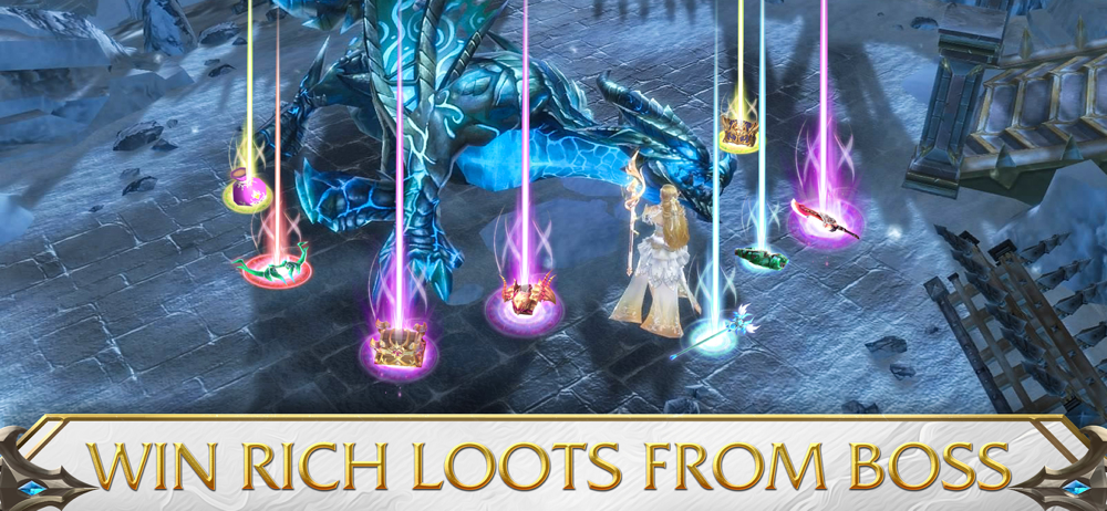 High drop rate of hunting bosses in the wide magic world. Kill world bosses to collect the precious loots which make you level up and power boost.