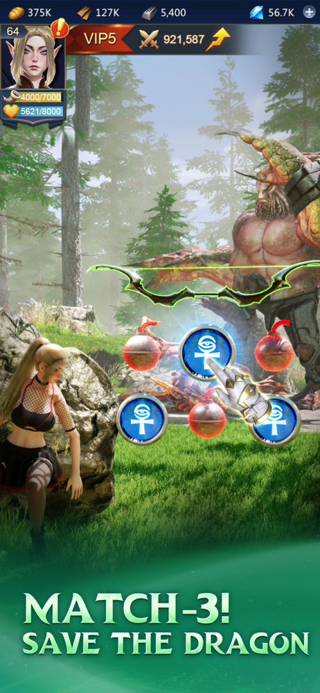 A mixture of puzzles and strategic gameplay! Defeat formidable enemies with match-3 combos and hero skills!